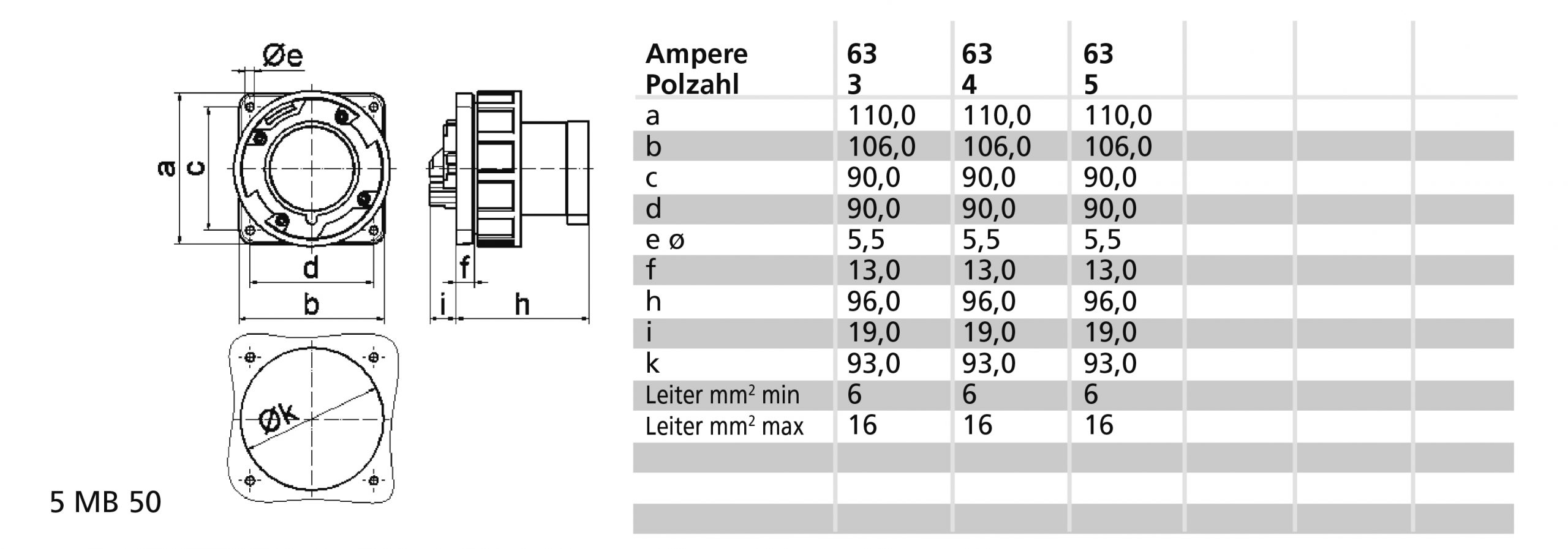 • SOCLE CONNECTEUR TABLEAU DROIT 3P+N+T 63A 400V 6H IP67